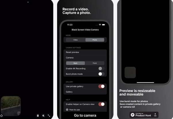 Black Screen Video Camera is a mobile application designed to enable discreet video recording or photo capture while the device screen appears inactive. It focuses on reducing visual visibility during use, which can help minimize distractions or screen light in low-light environments.