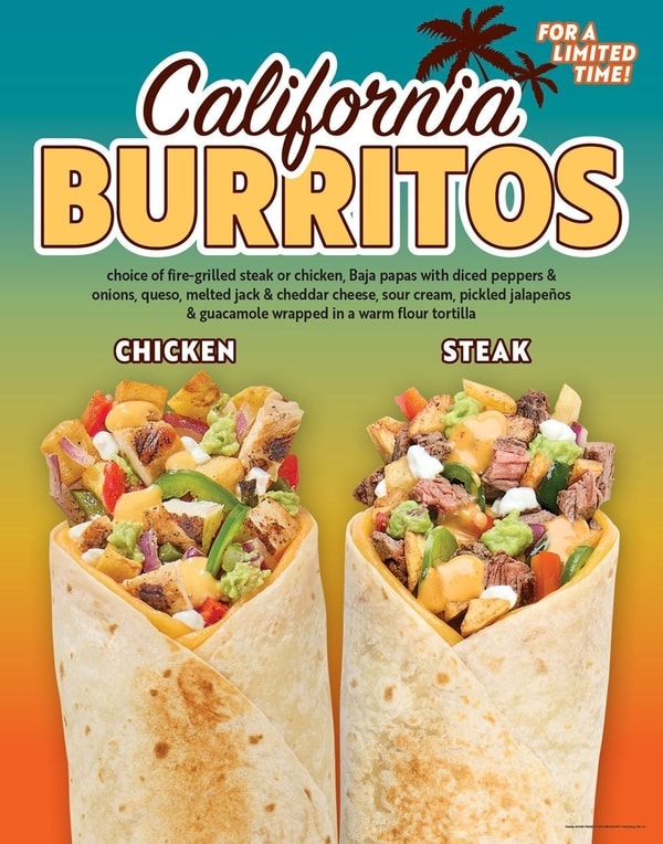 VP of Restaurant Operations Logan Reves spoke on the Baja Fresh California Burritos saying, "Just when guests thought our burritos couldn’t get any better, we’ve turned up the flavor on a fan favorite menu item with fresh ingredients, fire-grilled proteins, crispy potatoes and our signature queso. The California Burrito satisfies cravings and will bring a taste of California-inspired flavor that we are confident will keep our guests coming back for more."