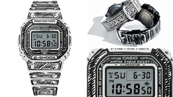 The Casio G-SHOCK x Joshua Vides watches are limited-edition models that reinterpret two classic G-SHOCK silhouettes through the artist’s graphic illustration style. The Casio G-SHOCK x Joshua Vides watches include the DW5600JV-7 and the DW6900JV-1, each finished with bold black outlines that make the cases and straps appear hand-drawn. The monochrome designs follow Vides’ "Reality to Idea" concept, which transforms real objects into two-dimensional comic-style illustrations using marker-like strokes and high-contrast graphics.