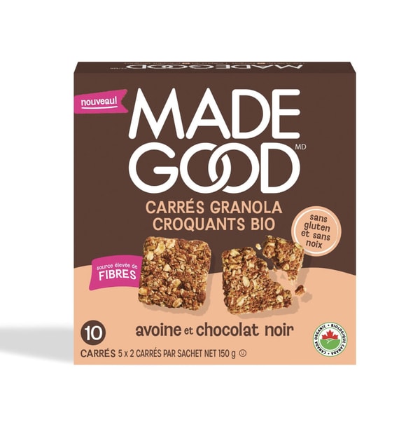 MadeGood's delectable Organic Crunchy Granola Squares are distinguished from other products on the market by their crisp and light texture. This is achieved by the company's use of organic, gluten-free oats sourced from the Canadian Prairies.