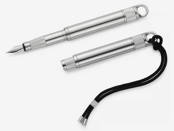The pen is available in both fountain and rollerball formats using a shared cartridge system designed to prevent internal movement during drops. Testing included repeated impacts onto concrete from one metre, with the pen continuing to function without interruption. The rollerball version is capable of writing over 1,500 metres continuously, supported by a precision feed system. The body measures 84 millimetres when capped and weighs approximately 36 grams.