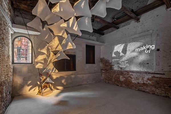 The Deggendorf Institute of Technology, in collaboration with HFT Stuttgart and the University of Stuttgart, created an installation called Flight into Shadow. Presented at the Venice Architecture Biennale 2025, this project used living mycelium structures as organic filters to soften and scatter light from an artificial sun composed of individually controlled luminaires. The dynamic creates constantly shifting atmospheres that range from intense brightness to gentle refuge.