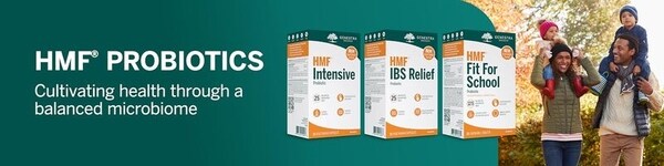 Genestra Brands’ HMF probiotics include various targeted formulations, including HMF Immune, HMF Intensive, HMF IBS Relief, HMF Travel, HMF Metabolic, HMF Neuro Cognition, HMF Women's Daily, and HMF Fit for School. The company emphasizes its long-standing presence in the professional healthcare market and the clinical research behind its formulations.
