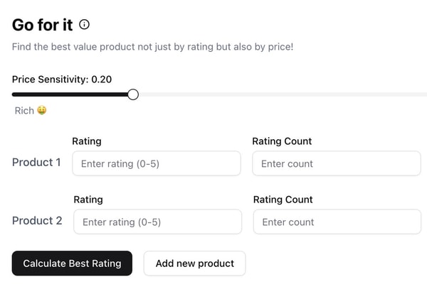 Go For It is a decision-support tool designed to assist users in selecting products based on data analysis rather than subjective judgment. It aggregates and evaluates key factors such as customer ratings, reviews, and pricing to identify options that offer the best overall value.