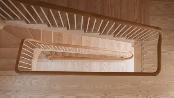 The extension introduces sculpted arches, yellow brickwork, and two-toned render, forming a distinct architectural language alongside the restored Victorian façade. Interior elements include a marble kitchen island, ash joinery, and a curving timber staircase connecting each level. Upper floors accommodate bedrooms and shared spaces arranged across both old and new structures. The project is designed to support multigenerational living, with spatial connections and separation distributed throughout the house.
