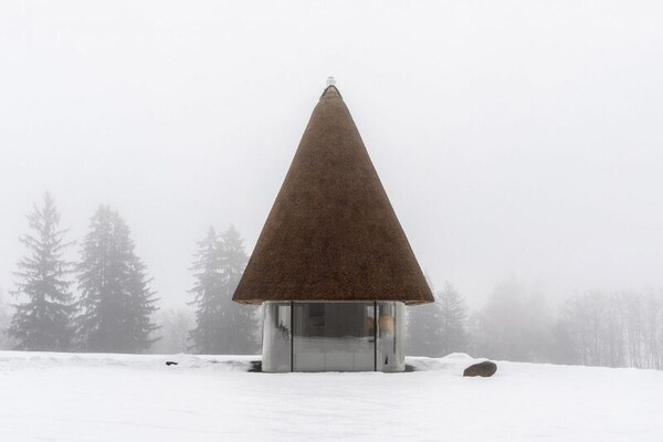 The Hata-Mazanka guesthouses are a group of compact hospitality buildings designed by YOD Group in central Ukraine. The project reworks the traditional Ukrainian hata-mazanka dwelling, which is typically defined by thick walls and a thatched roof, into a contemporary architectural form. Each guesthouse is organized beneath an oversized reed roof that visually anchors the structure, while the enclosed volume below is largely glazed to open the interior to the surrounding landscape.