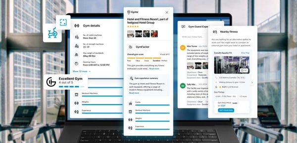 HotelGyms.com's GYMR browser extension overlays structured data — from equipment inventory and space measurements to operating hours and access restrictions — onto hotel listings, so a user can immediately tell whether a property has free weights, only cardio machines, or a closet-sized room with a single exercise bike before clicking the book button.