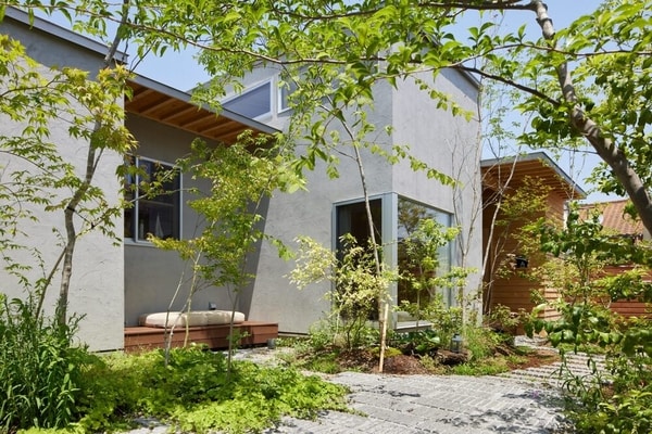 The House in Takahatayama is a compact residence by HYG ARCHITECTS located on a sloped site in Tokyo’s Tama Hills. The 60.7-square-metre home uses an irregular, jagged floor plan that follows the natural topography rather than flattening it. House in Takahatayama arranges its spaces in a continuous sequence, linking the kitchen, dining, living, and sleeping areas in a chain that moves through the site. Each room opens to small outdoor pockets, forming terrace-like edges that extend the interior outward.