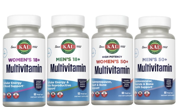 KAL Vitamins has expanded its multivitamin product line by introducing four age‑specific daily formulas — Women’s 18+, Men’s 18+, Women’s 50+, and Men’s 50+. Each of these products is designed to address the changing nutritional requirements of early and later adulthood.