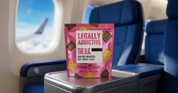 Legally Addictive Foods partnered with JetBlue to introduce a 1.34 oz. pack of its Original cookie for premium domestic passengers, featuring the brand's signature soft-baked recipe in single-serve packaging. The rollout began this month and places a recognizable direct-to-consumer snack into an airline's curated service offering.
