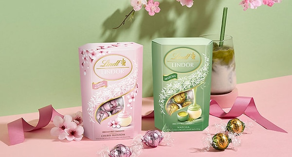 The Lindor Cherry Blossom truffles have a sakura-inspired composition that are evocative of Japan's cherry blossom season and feature a cherry blossom-flavored filling inside a white chocolate shell. The Lindor Matcha Cornet variety boasts a smooth green tea filling with a white chocolate shell for sweetness with umami tasting notes.