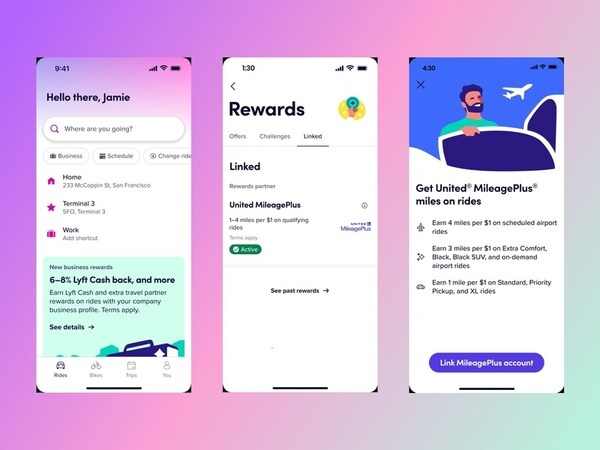 Participants can also redeem MileagePlus miles to pay for Lyft rides directly within the app, while 'Smart Scheduling' provides flight alerts and automated ride reminders for seamless airport coordination.