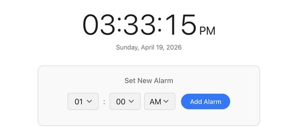Users can set alarms by specifying hours and minutes, making it suitable for wake-up scheduling as well as general time-based reminders. In addition to alarms, the inclusion of stopwatch and countdown features extends its use to productivity, cooking, workouts, and task tracking. The platform reflects a broader category of browser-based utility tools that replace traditional standalone devices with accessible digital alternatives. Its primary value lies in convenience and cross-device compatibility, enabling users to manage time-based activities through a single interface. It is typically used for both personal and routine scheduling needs.