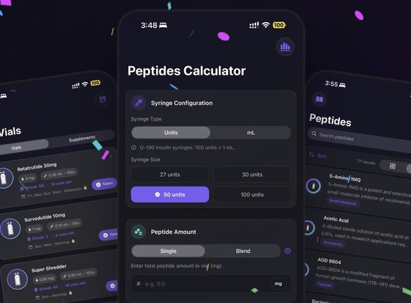 Peptides Calculator is a digital tool designed to assist with peptide dosage calculations by automating mathematical conversions typically performed in spreadsheets or manually. Users input variables such as vial strength, bacteriostatic water (BAC) volume, and desired dosage, and the application calculates the required measurements.