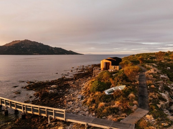 Picnic Island Cabin by Align Hovers Above Tasmanian Shoreline