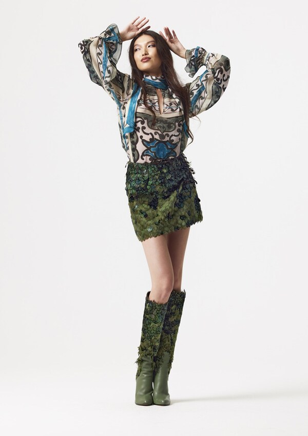 Sergio Soldano's Fall/Winter 2026-2027 capsule introduces a new visual language for the historic Italian house while honoring its legacy of craftsmanship and emotional storytelling. With a total of 77 garments and 22 accessories, the collection "unfolds across four macro-themes exploring adornment as a form of expression and renewal." The first theme bears the title 'The Architecture of Black, the Revelation of the Anemone.' The second theme is dubbed 'Genoa, Return to Origins' — "an homage to the birthplace of Maestro Sergio Soldano." The third theme explores notions of 'Squares in the City, Urban Geometries,' while the fourth theme embraces 'The Time of Sinopia, Rebirth' — "a poetic reflection on creative beginnings."