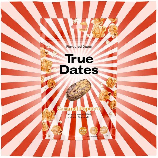 True Co.'s lineup of flavored dates expanded to include a brand-new True Dates Caramel Popcorn variety that enhances a fiber-rich fruit with a rich, caramelized flavor and crunchy popcorn bits. This fresh take on a classic movie night indulgence keeps its ingredient list simple, enticing snackers of all ages with no added sugar, natural flavors and True Co.'s signature made-in-Denmark quality.