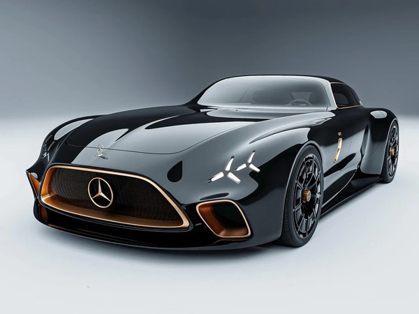 The Mercedes AMG Uhlenhaut Shooting Brake Concept is a digital concept created by designer Gabriel Naretto that reinterprets the Mercedes Benz 300 SL Uhlenhaut Coupe in a modern shooting brake format. The design retains the long hood proportions, low roofline, and cab-rearward stance associated with the original model while extending the silhouette into a sculpted rear cargo section. Gullwing doors reference the historic coupe, and the body features smooth surfacing with integrated aerodynamic detailing. The exterior is rendered in black with copper-toned accents outlining the grille and window trim.