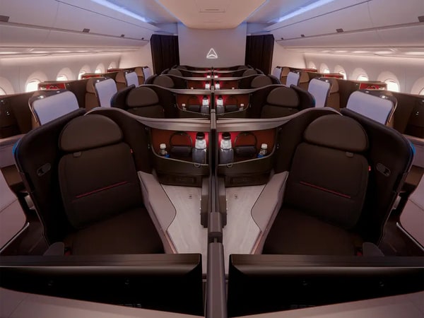 The VantageNOVA builds on the Vantage XL platform with lighter construction, slimmer doors to increase perceived space, and memory-foam cushioning; Delta said nearly half of the A350-1000 cabin will be business-class or Premium Select. The carrier also plans to retrofit A330-200 and A330-300 aircraft and add self-service refreshment stations, improved Premium Select recliners, and enhanced economy screens.