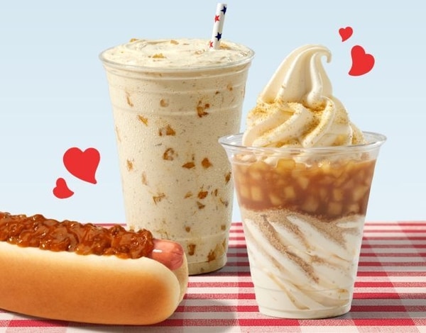 The menu starts off with the Apple Pie Shake, which boasts a base of Tastee Freez vanilla soft serve blended with cinnamon-spiced apple and a graham cracker crumble. The Apple Pie Sundae, on the other hand, features soft serve topped with cinnamon-spiced apples and graham cracker crumbles for a different kind of taste and texture.