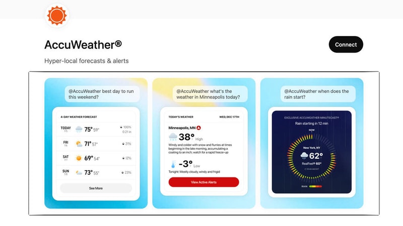 AccuWeather introduced a ChatGPT app that delivers its forecast inside the chatbot, featuring interactive modules that surface MinuteCast, RealFeel and RealFeel Shade. The integration was rolled out by AccuWeather to let users ask contextual weather questions without leaving ChatGPT. After connecting the AccuWeather app to a ChatGPT account, queries return forecast details and timing recommendations within the conversation. The feature presents precipitation timing, perceived temperatures and shade-adjusted readings alongside natural-language answers.