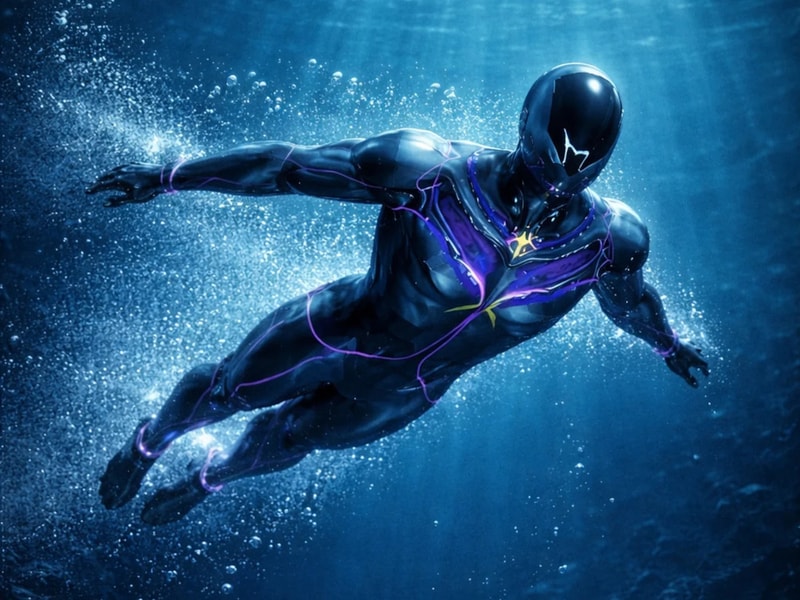 The suit incorporates built-in motors to assist movement and reduce drag, supporting smoother navigation through water. An integrated AI system monitors the diver’s condition and surrounding environment in real time, creating a continuous feedback loop for safety. Light strips embedded across the surface act as visual indicators, signalling status and potential hazards to nearby divers.