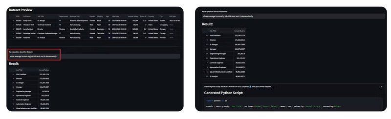 Importantly, the generated code is visible, allowing teams to review, reuse, or adapt it within existing workflows. From a business perspective, this approach reduces dependency on specialized analysts for routine insights while maintaining transparency and auditability. It can support faster decision cycles by turning ad hoc questions into reproducible analyses. The tool also serves as a learning bridge, helping spreadsheet-heavy teams understand how Python-based analytics operate. Overall, it demonstrates how natural language interfaces can make advanced data workflows accessible for modern business teams.