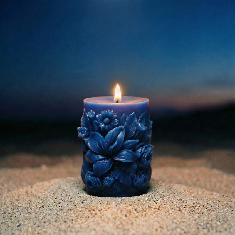 Bluecorn Candles Boasts the Sculpted Floral Beeswax Pillar Candle