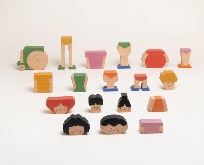 Body Blocks by Davina Atallah is a modular wooden toy made of interchangeable pieces that represent different parts of the human body. The project was designed by Lebanese designer Davina Atallah and produced by Beirut-based studio House of Humbaba. The set includes heads, torsos, and lower body forms that can be stacked in varying combinations to create different figures.