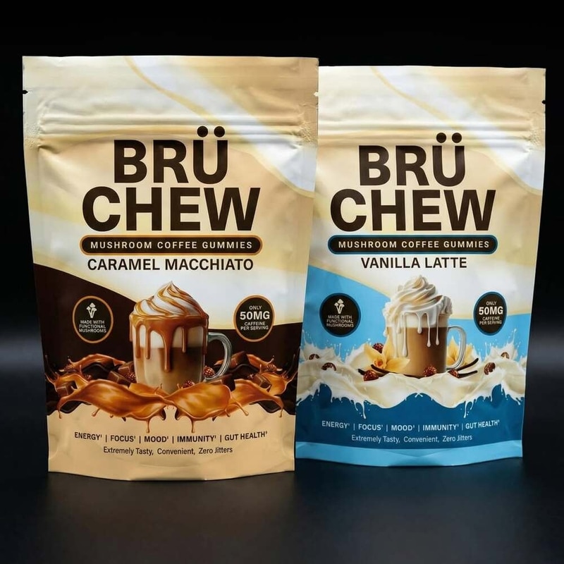 Portable, made-for-modern-life BrüChew debuted in coffeehouse-inspired flavors like Vanilla Latte and Caramel Macchiato, each with 50 milligrams of natural caffeine per serving from Coffeeberry green coffee bean extract, plus benefits from lion's mane, cordyceps, turkey tail and reishi mushrooms. In terms of taste, BrüChew gummies are said to be sweet, roasted and rich in flavor.