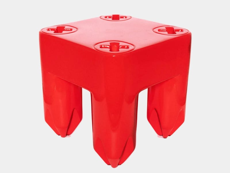 Carpet Company introduced the S-TOOL, a 12-by-12-by-12-inch fiberglass cube designed to function as a stool, ottoman or decorative object, featuring molded screw-head reliefs and legs shaped like Phillips drivers. The piece was cast in a single gloss color and finished with a metal plaque under each unit, detailing its edition number.