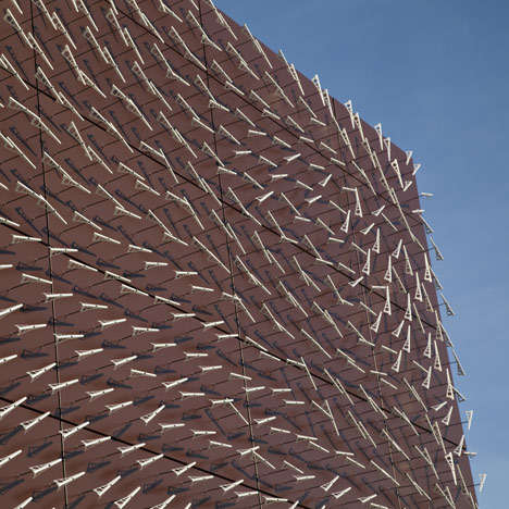 As something we often ignore because we can't see it, the wind ebbs and flows through this installation piece, making it appear as though it is contorting on its own. The project uses 612 aluminum weather vanes that rotate and point in the direction the wind is blowing. It gives us a visual of how dynamic the air flow really is, constantly changing in multiple directions, causing the weather vanes to have a rippling effect at some moments and a swirling effect at others.