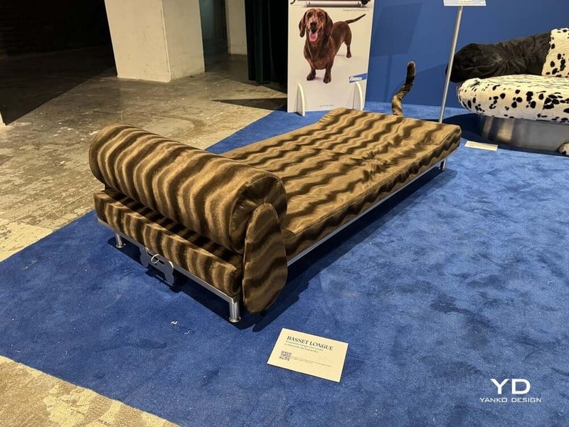 Elanco’s Pet Collection is a series of four furniture pieces developed with Milan-based studio Parasite 2.0, presented at BASE Milano during Fuorisalone 2026. The project translates animal forms into domestic objects, using dog-inspired silhouettes to highlight how fleas spread across shared living environments. Each piece takes on both a breed reference and a furniture typology, turning sofas, chairs, and tables into exaggerated, fur-covered forms that directly mirror pets in the home.