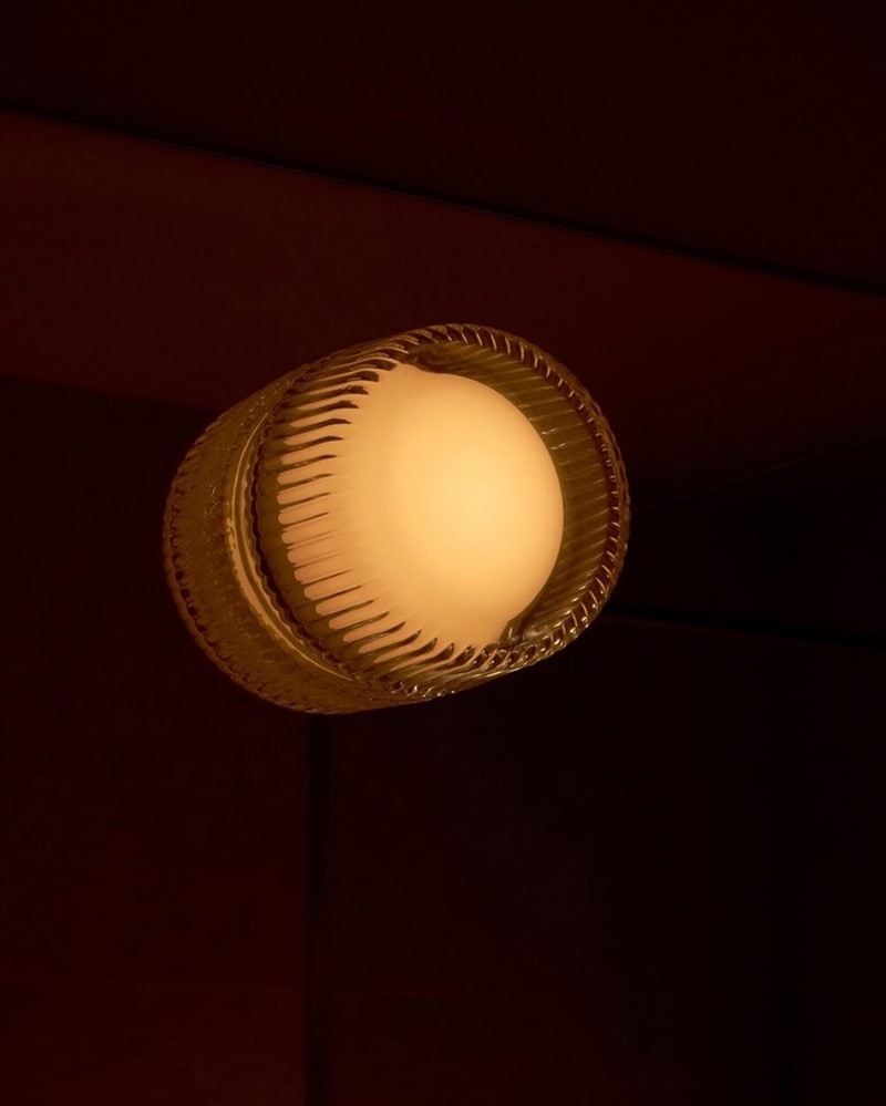 Tala’s Firth wall light presents a compact luminaire constructed from mouth-blown borosilicate glass with a ribbed edge profile. The design uses a circular form with softened ridges that diffuse and refract light across the surface. The fixture sits flush against the wall with no visible fixings, creating a continuous glass volume that conceals its internal components. A GX53 bulb is integrated within the unit, paired with a silicone diffuser that distributes light evenly across the face of the fixture.