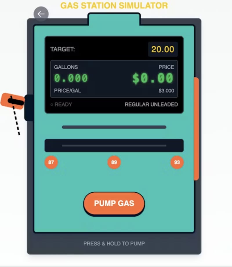 Gas Station Simulator Tests Precision By Stopping Pump At Exact Amount