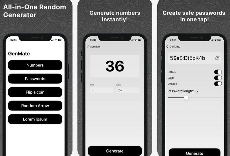 The platform consolidates multiple small utilities into a single interface, allowing users to quickly access randomization functions without additional setup or external tools. It is typically used for lightweight decision support, basic cryptographic password creation, and casual probability-based interactions. The application is structured to prioritize speed and simplicity, offering immediate results without advertisements or complex navigation. GenMate reflects a broader category of utility apps that focus on small, task-specific functions rather than comprehensive software suites. Its primary purpose is to provide fast, accessible randomness tools that support both practical and casual use cases in digital environments.