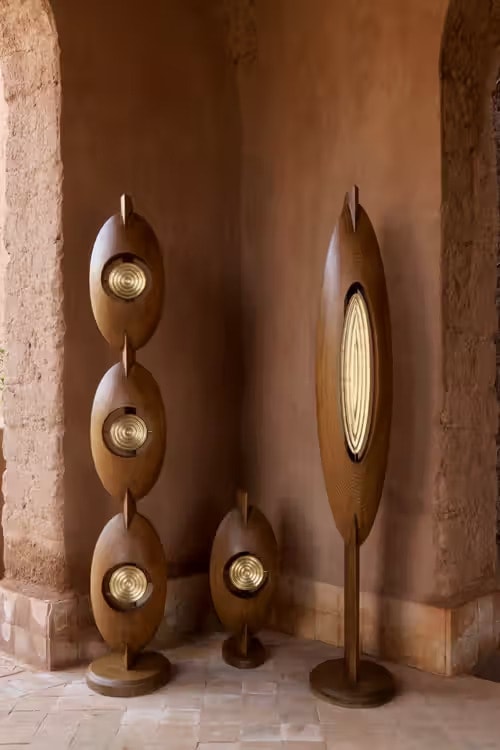 The Gèlèdé Lamp Collection by Salù Iwadi Studio is a series of sculptural lighting objects that treat illumination as a cultural and symbolic medium rather than a purely functional output. Developed by Toluwalase Rufai and Sandia Nassila, the collection draws from the Yoruba Gèlèdé tradition, where feminine authority and generative power are central to social continuity. The lamps reinterpret light as something held and released, described as “living matter” shaped through material and form rather than emitted uniformly.