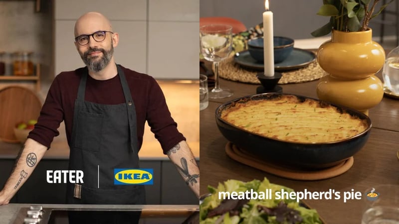 IKEA Binging with Babish recipes form a new video collaboration between IKEA, Andrew Rea of Binging with Babish, and Eater, centered on reworking the brand’s food offerings. The series uses IKEA’s Swedish meatballs as a starting point, with Rea deconstructing the dish and rebuilding it into variations like shepherd’s pie. The format shifts away from fixed instructions, focusing instead on how familiar recipes can be adapted through personal technique and reinterpretation.