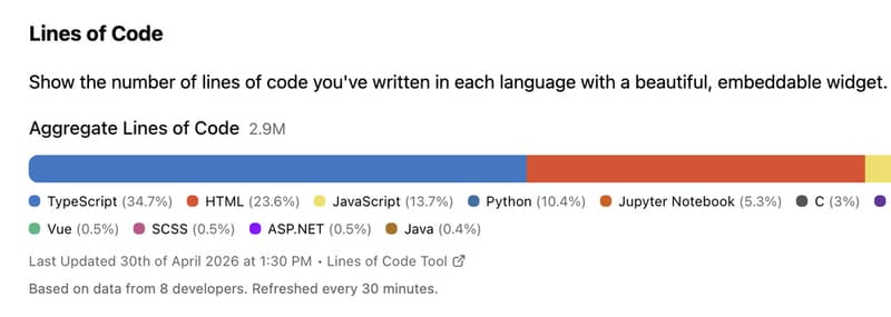 Lines of Code enters the developer analytics space with a focus on quantifying coding output across GitHub repositories. By aggregating line counts across programming languages, it offers a simplified metric for visualizing developer activity. From a business perspective, it aligns with the growing interest in personal developer branding and transparent contribution tracking, particularly within open-source ecosystems.