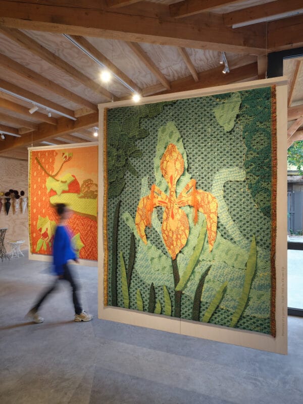 Kiki — of the design duo Kiki and Joost — has created a stunning textile artwork series titled 'Memories of a Garden.' This collection of four jacquard-woven tapestries is produced at the TextielMuseum Tilburg using an unconventional blend of hemp, wool, paper, and golden threads.