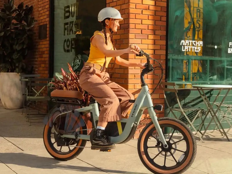 The Segway MUXI e-bike is a compact utility model designed for urban commuting and light cargo transport, combining a short-tail frame with adaptable storage options. The structure uses a low-slung chassis with an integrated 716Wh battery positioned near the base, lowering the centre of gravity for improved stability when carrying weight. A 750W rear hub motor delivers up to 80Nm of torque, supporting speeds of up to 20 mph while maintaining a Class 2 configuration.