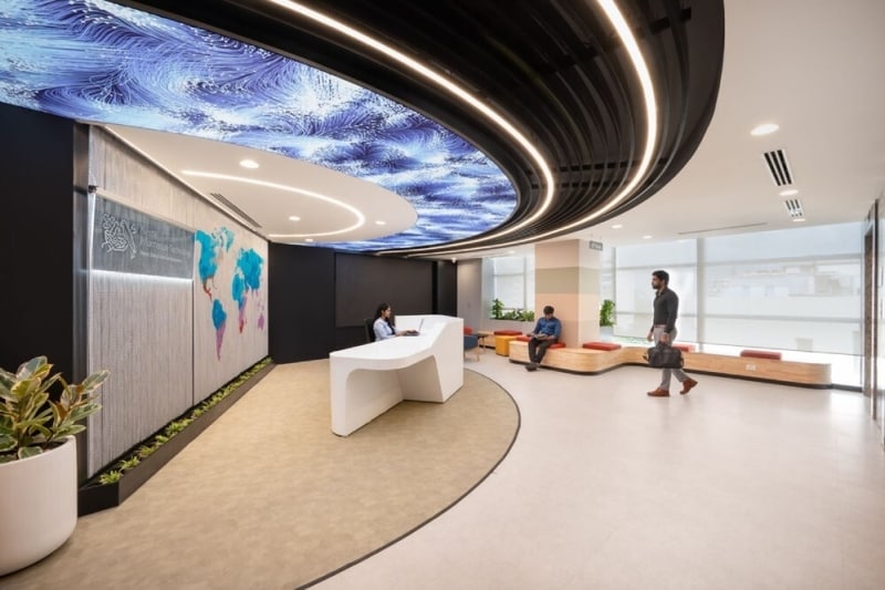 Sustainable touches such as motion-sensor lighting, optimized space use and dedicated wellbeing areas (health rooms, focus pods, recreational zones) were incorporated to boost employee restoration and operational efficiency. The project demonstrates how adaptable, brand-led office design can support evolving digital teams and local work cultures.