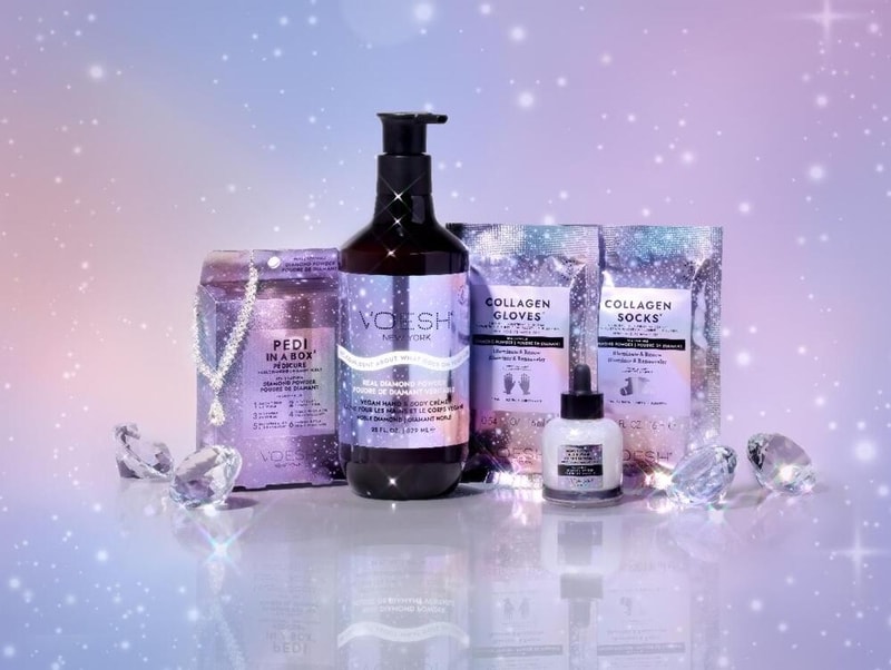 VOESH Professional has launched the Noble Diamond collection — a pro-exclusive line of salon treatments infused with real diamond powder. The capsule includes a six-step Pedi in a Box system, Collagen Gloves and Collagen Socks, a Hand & Cuticle Elixir, a Vegan Hand & Body Crème, and a Salon Starter Kit.