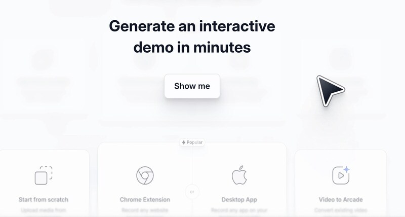 Arcade is a software platform designed to help teams create and share interactive product demonstrations. The tool allows users to build demos quickly and embed them across multiple channels, including websites, blog posts, and social platforms.