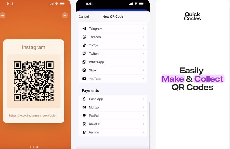 Quick Codes is a QR code generation tool designed to create and manage scannable codes for a range of digital and physical use cases. Users can generate QR codes by entering links, social media usernames, or network credentials such as Wi-Fi access details.