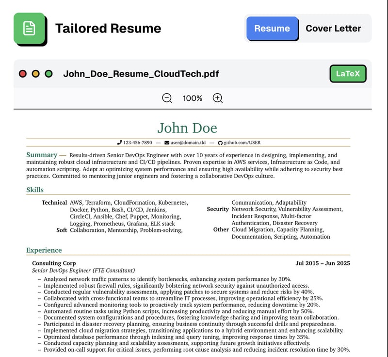 Recruitment and Staffing — Automated resume tailoring can redefine sourcing workflows by surfacing higher-fit candidates earlier in the funnel through improved application signal quality.