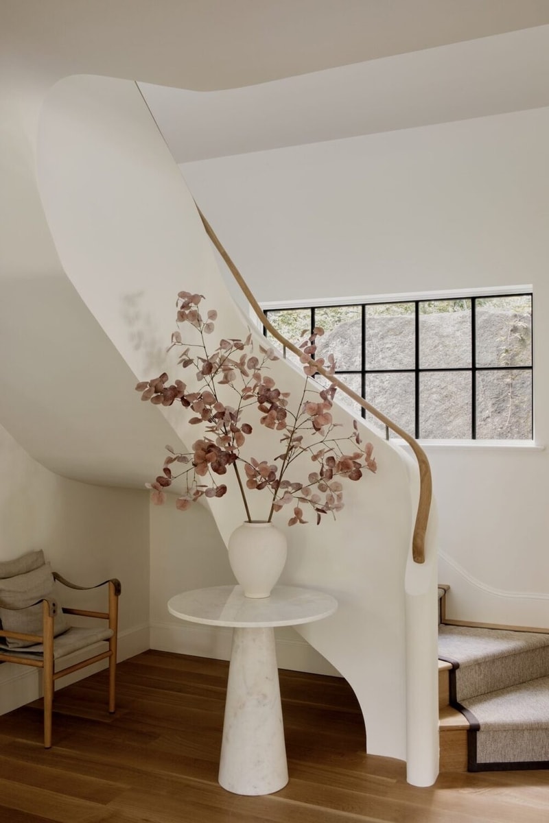 3. Interior Joinery and Stair Fabrication - The prominence of sculptural wood staircases suggests opportunities for bespoke prefabricated structural-joinery solutions that combine craft aesthetics with repeatable production methods.