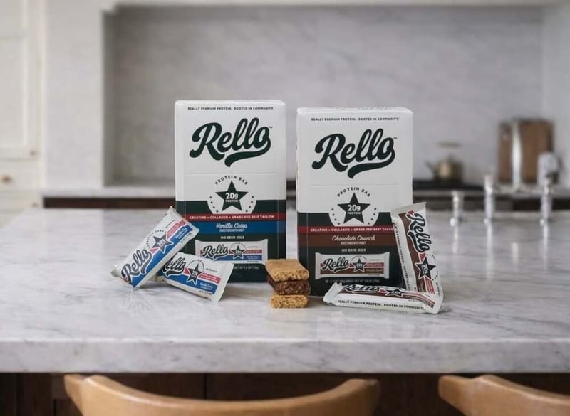 Rello Protein Bars are made with real ingredients to provide clean fuel for the body and mind—not just 20 grams of protein but also 1.2 grams of creatine. Available in classic Vanilla and Chocolate flavors, these bars additionally feature grass-fed, grass-finished beef tallow, collagen, and a touch of organic honey for sweetness. For ingredient-aware consumers, what's excluded is also important, and Rello leaves out all artificial sweeteners, natural flavors and seed oils.