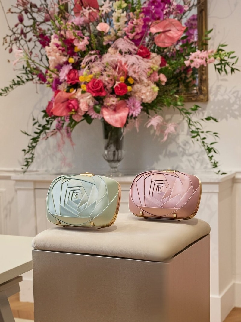 The 'CHOC: Architecture de la Séduction' capsule also reimagines other classic feminine motifs — from metal bows encrusted with strass on pump silhouettes to over-the-knee boots featuring a lower Choc heel with embroidered and buckled details. The Rose Vivier bag design, on the other hand, showcases exceptional handcraftsmanship, where each leather petal is individually cut, shaped, and applied.