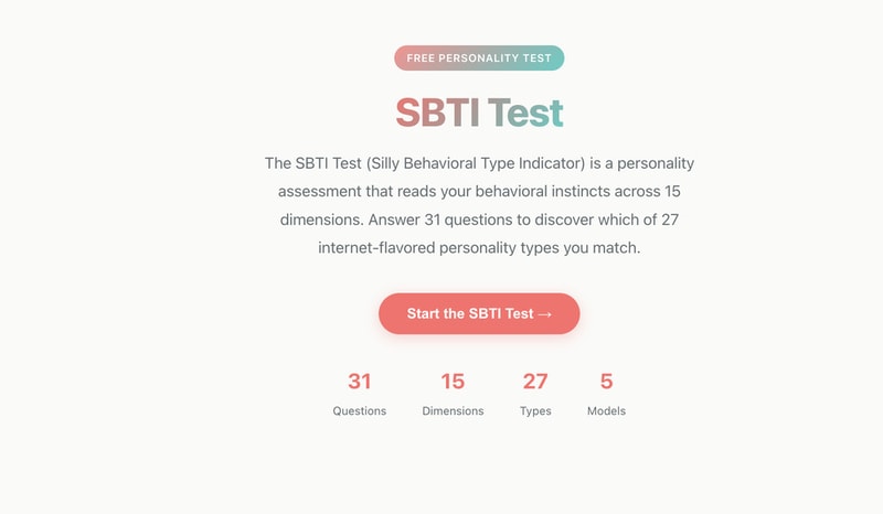 If you have seen people posting strange type codes like OJBK, CTRL, or SEXY and wondered what everyone is talking about, SBTI Test is the fast, free way to find out. This fan-built Silly Behavioral Type Indicator gives you 31 questions, measures you across 15 behavioral dimensions, and matches you to 1 of 27 internet-flavored personality types. Unlike more formal personality systems, the point here is not clinical diagnosis.